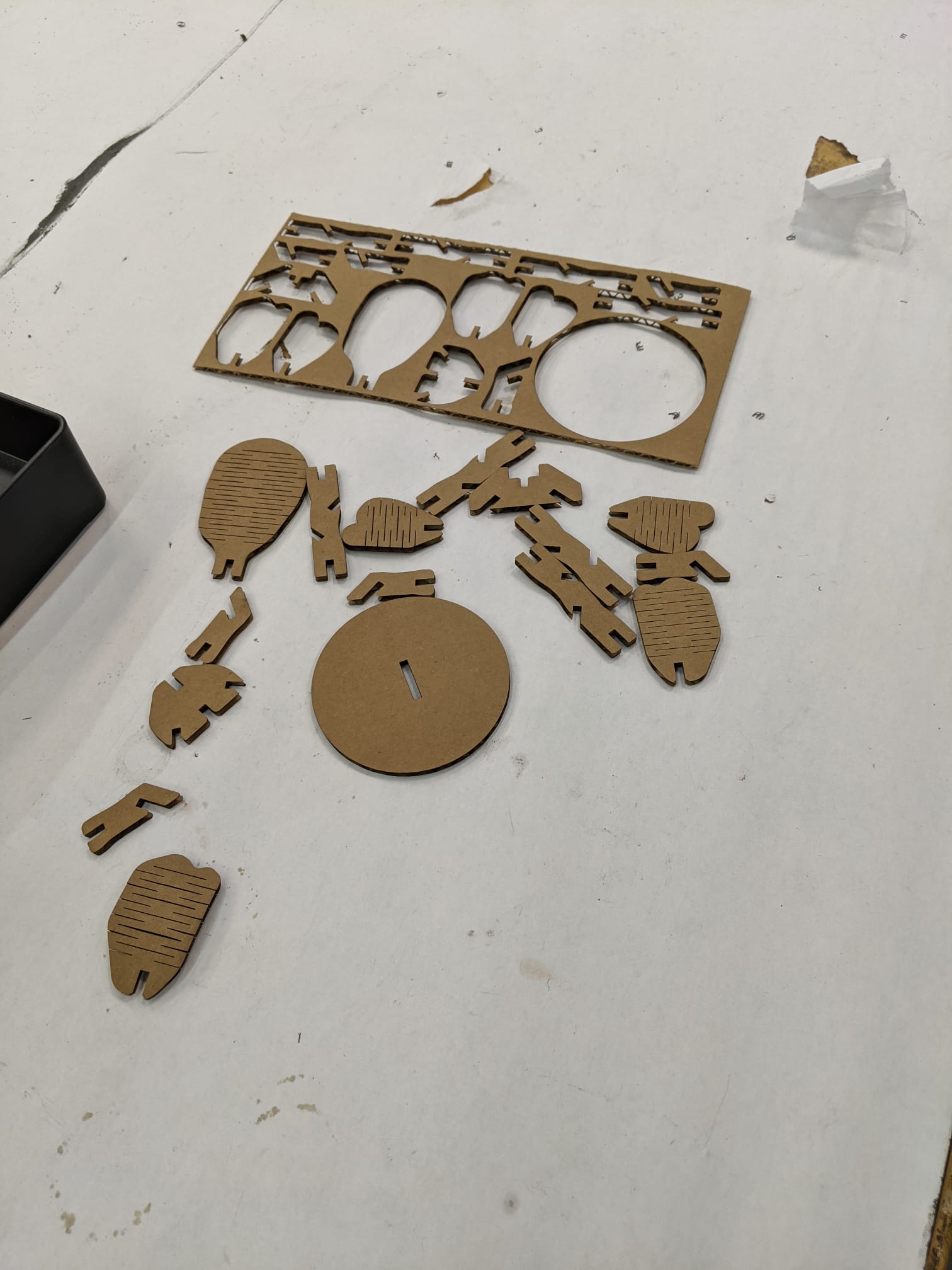 To guarantee that the laser cutter translates my design accurately onto the cardboard, cardboard movement needs to be minimized. That’s important for fine details like the living hinges in particular. I’ve observed the laser cutter cutting the outline of my pieces first in some instances, before then going to work on the living hinges. At that point the piece is fairly loose and I’ve seen it move quite a bit once the entire outline has been cut. So, to alleviate these sorts of problems for future projects that might require more accuracy, I’d love to understand better how the software determines the order of the cuts it makes - and how I could influence that so that cutting the outline is the final step for a component.